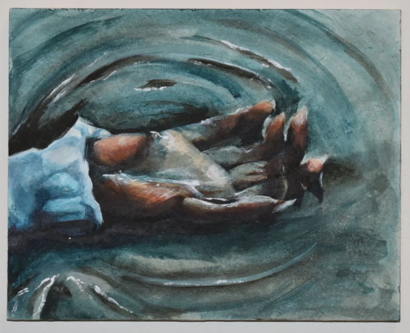 Metal wire, fishing line, paper, acrylic and ink on paper installation
