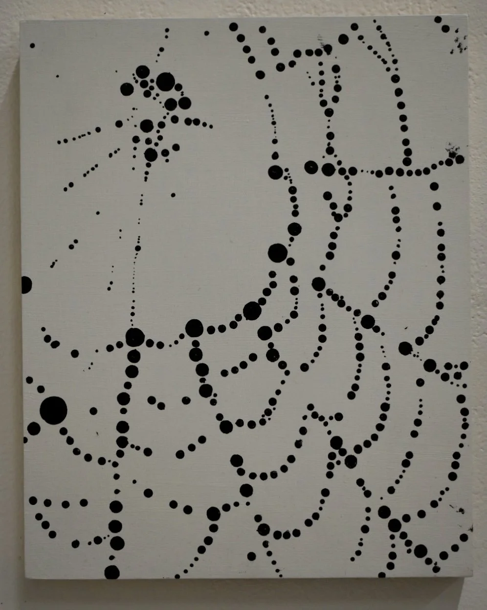 Acrylic applied with strands of human hair on wooded board