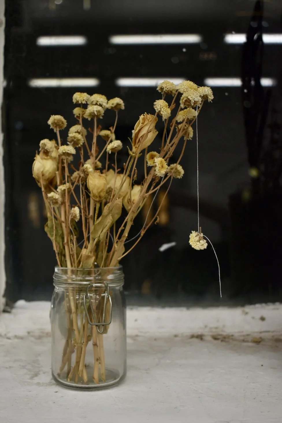 100% cotton thread on dried flowers in glass jar